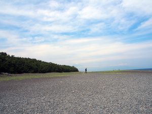 さてどうするか。ここで予定に入れてなかった三保の松原に行くか。ここからなら20kmぐらいか。でもここに行くには混んでいる清水周辺を通るしかないんだけど・・・とりあえず行ってみる。R1から清水市街地を通過。思ったより混んでいないから助かった。スイスイ走れて13時頃に目的地に到着。それなりに観光客が居て駐車するのも大変そうだったけどバイクだとすぐに入口傍の駐車場に入れて料金無料なのが嬉しいねw気温は高いが強い海風が心地よい。松林を抜けて砂浜に出て富士山を眺める・・・更に霞んで見えないじゃないか。ガッカリだー