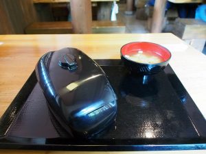 この店の売りはバイクのタンクをかたどった容器を使っている。コラボの弁当も色違いだが同じ容器。ほぼ全員この弁当を食べている感じ。10分ぐらい待たされたけど出てきたのはこんな感じ。すっかり御当地グルメになってしまった豚味噌を使った丼タイプの弁当。実は秩父は蕎麦!と決めていたので初めて秩父で豚系を食べる。・・・まぁこんな物でしょう。1000円だし。