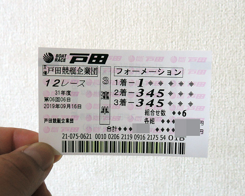 優勝戦はなんとピット離れで4号艇が立ち後れ、5号艇とコースが入れ替わったせいで1235/46というやる気があるのか判らない進入、まぁ1号艇がメイチスタート切ったからアッサリ逃げて1-3-5で当たったんだけど。なんだかなぁって感じかな。当たったからいいけど換金しに行くの面倒くさいわ。何故電投にしなかったのか後悔というか、気力が無いんだなぁ・・・