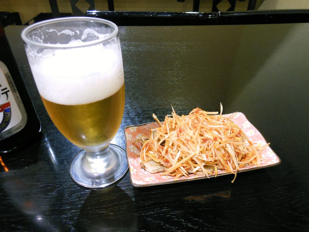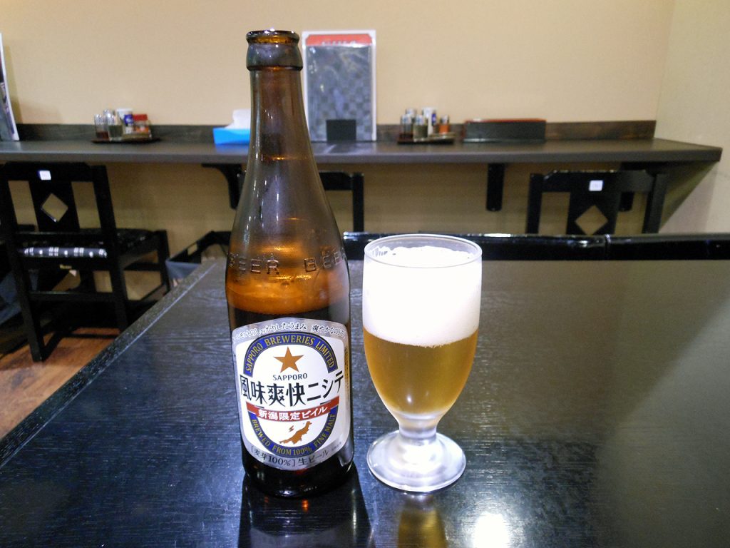 現時刻18:15。どこもかしこもオーダーストップが19時なのでサクッと食べて帰ることに。適当にも呑みたいしラーメンも食べたくなったので『魚沼ラーメン雁舎』で食べる事に。ピリ辛ネギチャーシューと油揚げと地ビールを頼んで1人晩酌。ネギチャーシューがハンパなく辛い。油揚げも絶品なんだけどね・・・味が濃すぎる!ピリ辛ネギチャーシューは辛さは良いんだがそのうちしょっぱさが目立ってくる。油揚げはそれ自体が美味いんだけどかけてある味噌だれが濃すぎて油揚げの香ばしさをぶち壊している感がある。越後人はこう言う味付けが好まれるのか?う”ーん・・・。地ビールはごく普通だった。そんなもんだろう。