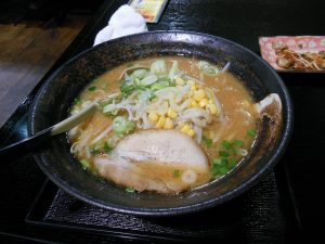 〆の味噌ラーメン。もっちり感があるという米粉麺を頼んだ。これは普通の味付けで普通に美味い。19時前に店を出てコンビニで買い物してそのまま帰る。明日はどうなることやら。ヘタすりゃ今回の旅はおにぎりとラーメンだけの思い出になりそうだ(汗)