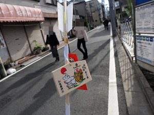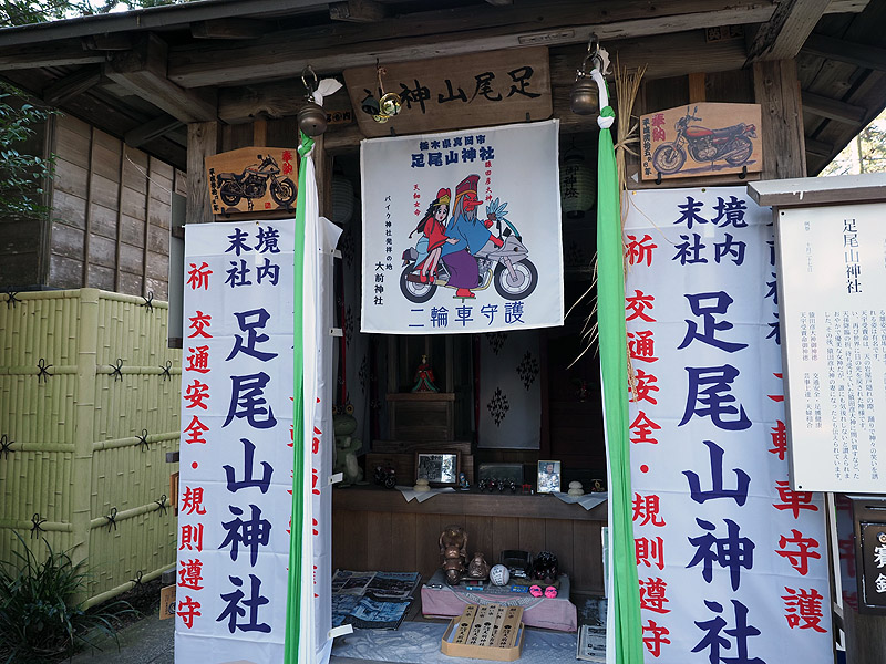 恵比寿様はスルーして普通にお詣り。本殿の裏には摂社末社がおかれていて、その中の一つ足尾山神社がバイクを祀る神社らしい。
