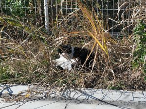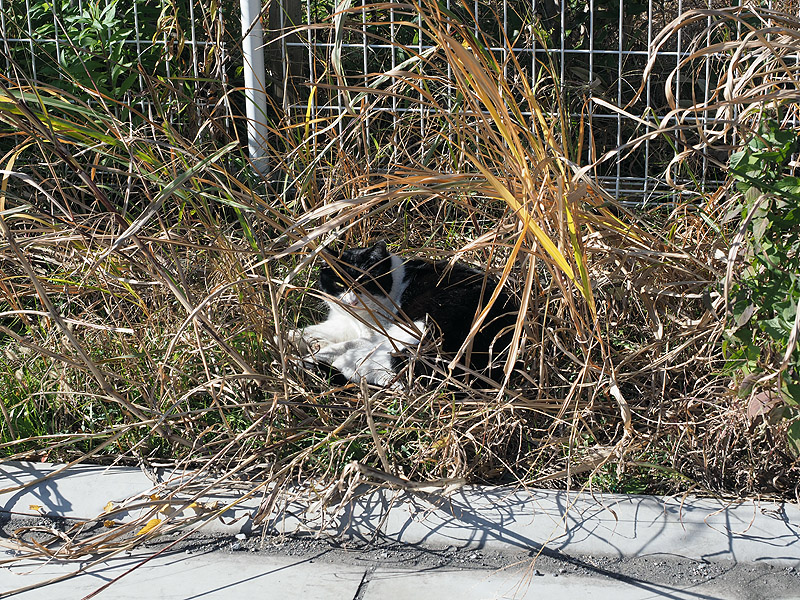 帰るとマンションの前に雑草の茂美の中で寝る猫発見。コイツ最近堂々と歩いているんだよな。人にも随分なれていて、JKかJCが触っても逃げる気配が無い。多分野良のボス猫なんだろうなと。