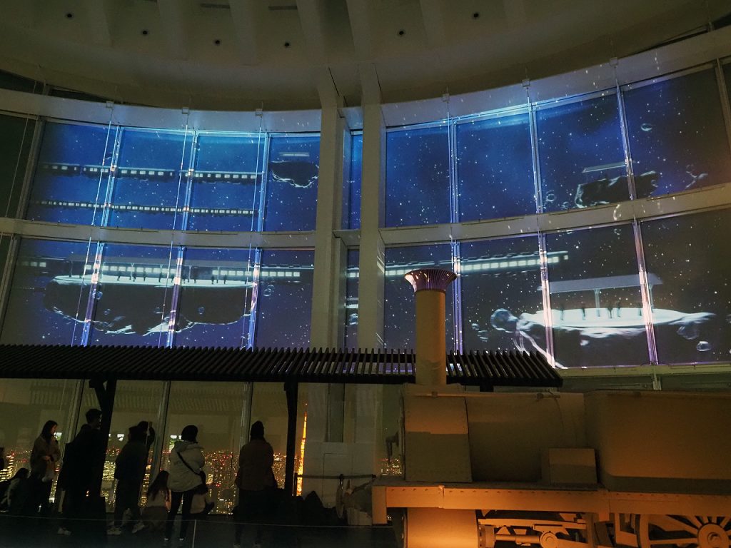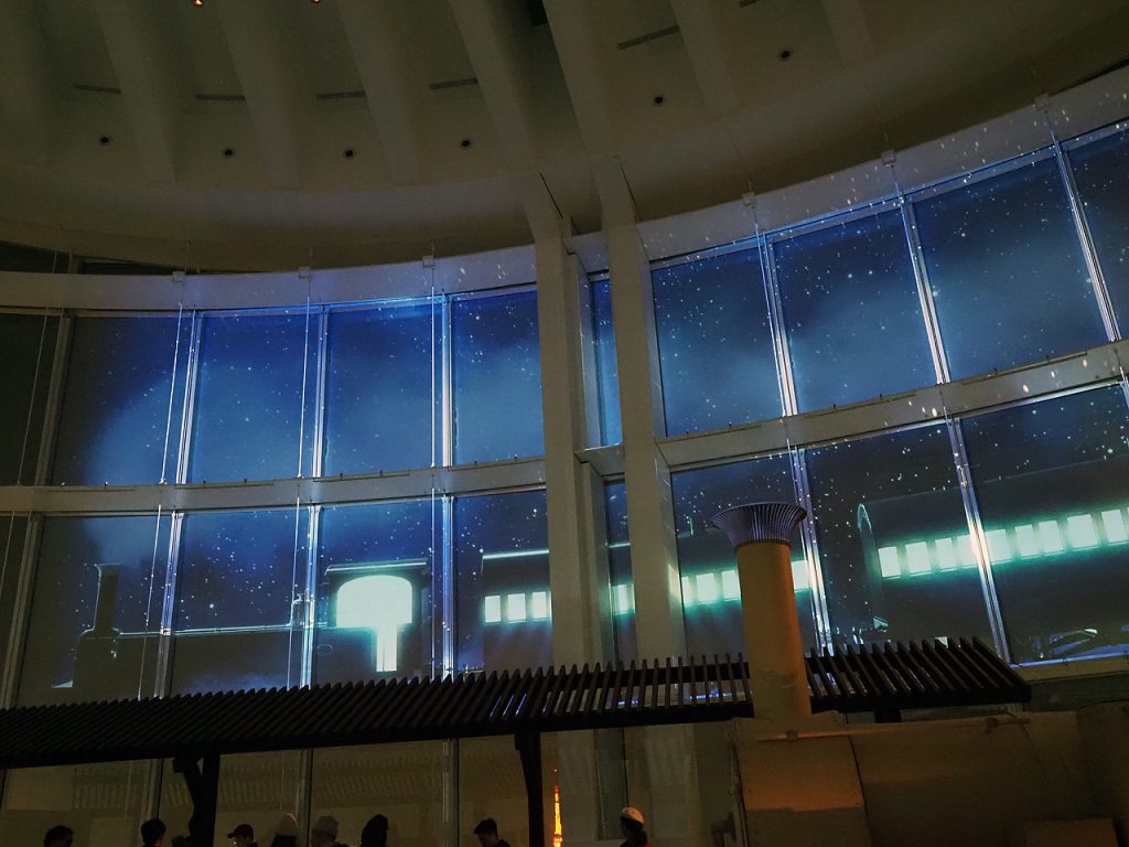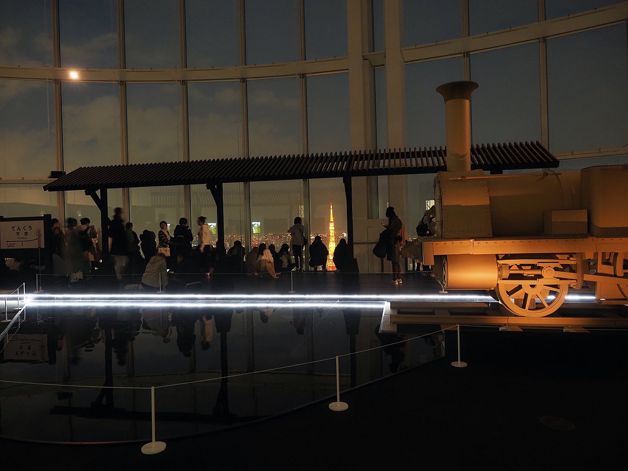 観たかったのは日没後に始まるプロジェクションマッピング。天空の星の海を走る列車を観たかったんだけどうーむ、イマイチというかポスターのような感じじゃないんだな。しかも窓に張りついた方々は全く意に関していない。何見に来たんだ?あー東京タワーかw