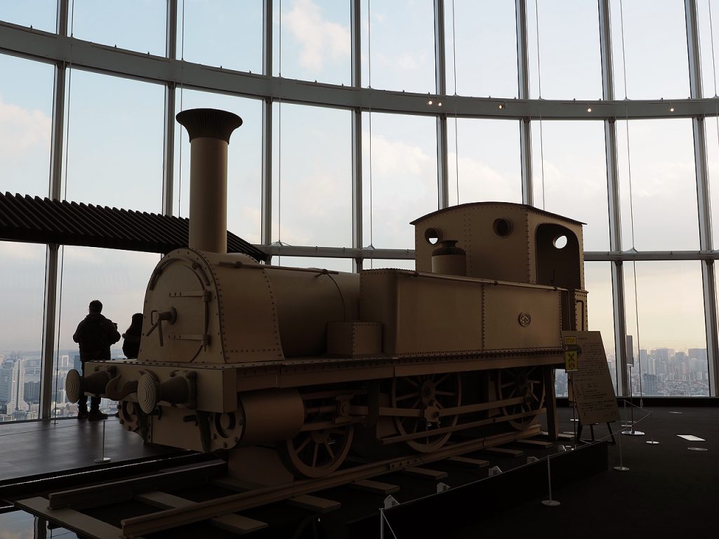 内回りコースから外回りコースへ。記念写真どうですか?と言われたのでせっかくだから撮って貰った。まぁまさかの遺影にでも使って貰えれば(汗)。ここには展望デッキ兼用で天空の駅ホームとダンボール製SLがある。来たかった理由が実はここにあった。だけどまだ時間じゃないからぷらぷらと景観を撮影しつコーヒー飲んで寛ぎつつひたすら待つ・・・