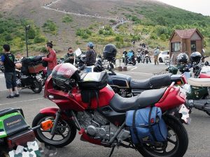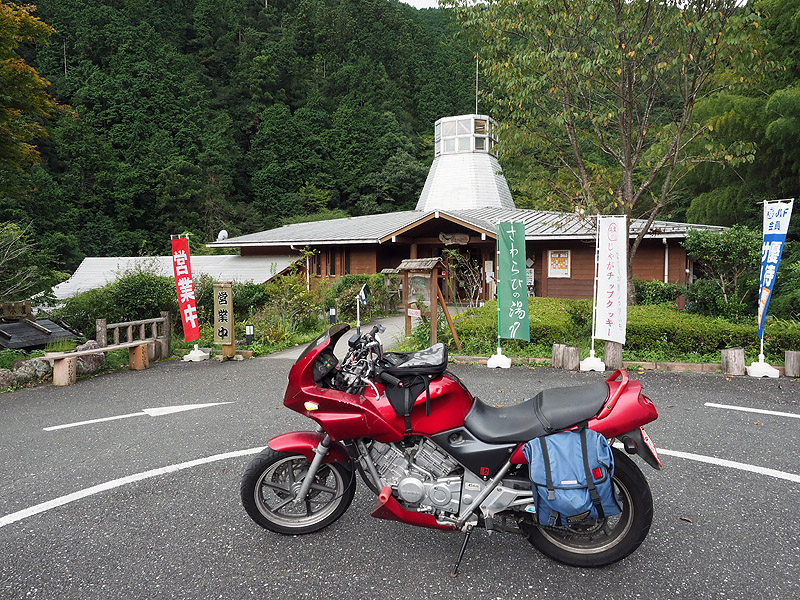 道の駅こがに10時半に集合・・・の筈なのが来ない。まぁ平日月曜なんて交通量が読めないので致し方ないか。ワタシも色々あって10分程遅刻したのだが。空は良い天気だなぁ。11時過ぎにようやく合流。面倒なのでここで食事をとって12時前に出発。今回は同僚と同僚の友人の計三人。相手はCBR250RRとCB400スーフォア。いずれも最新型である。赤ゼルは30年前のお爺ちゃんバイク・・・見劣りするわ(汗)。ワタシが先導する形になりR4を北上。一応マスツーなので後ろに付いてくる2台を確認しつつ走る。非常に面倒くさいわ。北関東道を越え、R123を越え、県道64号に入る。ここまで来ると交通量も減って走りやすいわ。