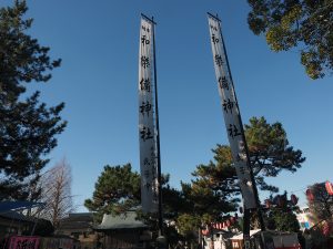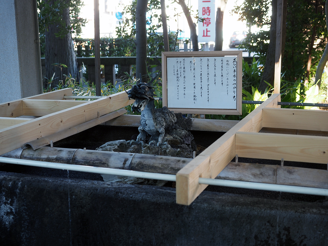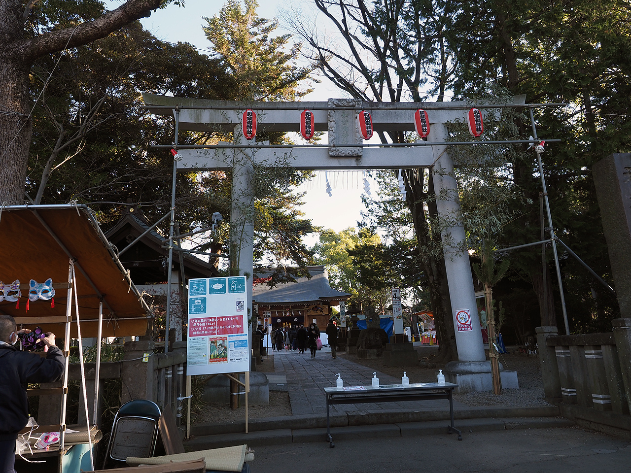 9時頃に到着すると聞こえてくるのは君が代。おお!知らなかった。神社だからやっぱり国歌斉唱なんだな。そして鳥居に近づくとそこにはアルコール消毒の机が・・・まぁそうだろうなという感じです。そうなると手水舎はと・・・