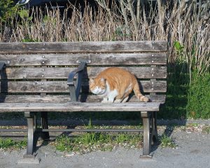 まぁ先客がいまして、なんだお前はって顔をして睨んでおります。うちの周りは野良猫天国なのであっちこっちいます。コイツは初めて観るぬこだなぁ。この公園を根城にしているんでしょうね。