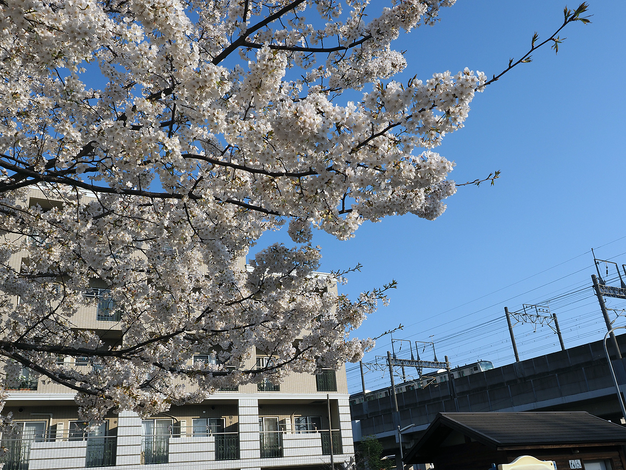 なーんか日月と天気が悪いようなので、定時で帰れた今日、近所の小さな公園に咲く1本桜を撮ってきました。ここに桜が咲いていることを昨日知った(汗)