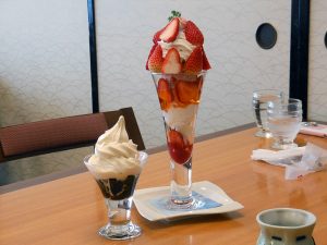 幸せパフェ。隣のコーヒーサンデーが通常サイズw