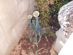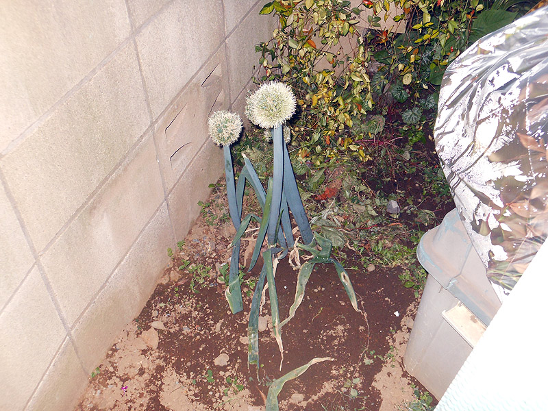 忘れられたというか、そう言えば冬に田舎からネギを大量に貰って、保存するように地中に埋めたのだが知らぬ間にネギが育っていたぞ。種取るからこのままにするとかーちゃん言っていたが多分存在を忘れていたんだろうなぁと(汗)