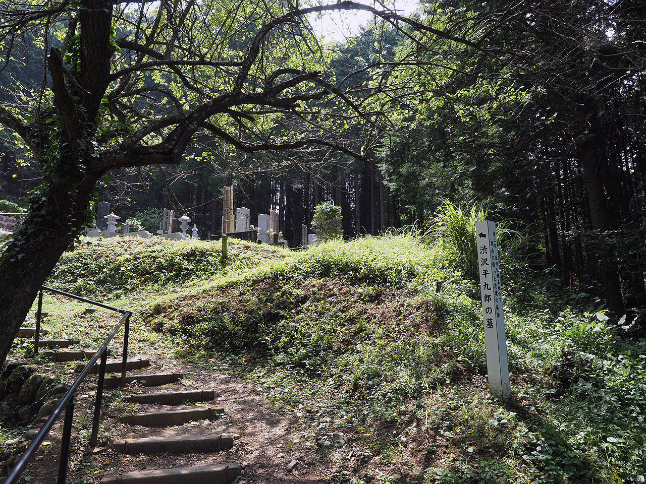 8月最後の月曜日です。残暑も非常事態宣言も厳しい中ひとっ走り行ってきました。まぁ県内だし空気はいいし何も問題ないはずです(多分)。今回は『青天を衝け』で非業の死を遂げた悲劇の幕臣渋沢平九郎のお墓から奥武蔵グリーンラインを経て玉川温泉にいたる『青天を衝け』コース。恐らく武振隊と名乗る幕府軍は飯能で敗退した後、顔振峠からいくつもの峠を越えて北上し高崎に落ち延びるつもりだったのだろう。途中で平沢成一郎達と離れてしまった平九郎は顔振峠を越えて越生方面に逃げた途中新政府軍と遭遇して彼の地で自刃して果てたと知りました。