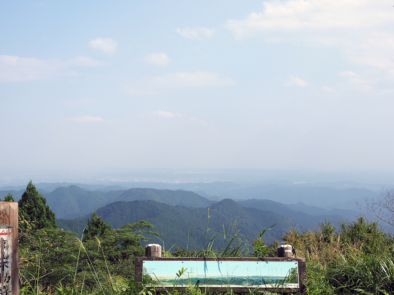 見晴台には先客3人いて凄く心配してくれてた。リタイヤしたような会話をしていたなぁ。ビールを勧められたがそれは断ったよ(汗)。40分ぐらい全く動けなくなって持ってきた氷結麦茶をチビチビ飲んでようやく回復。パンはとても食べられなかった。お世話になった3人を見送り、ようやく周りを見渡してみると・・・う”ーん木が邪魔だしちょっと霞んでイマイチだなぁ。2方向のうち房総方面はどうにか見渡せるので撮影。下りは楽勝というか上りの10倍ぐらい速い感じ。元の駐車場に辿り着いたのは14時半過ぎぐらいか。完全に時間オーバー。体は水分と休憩を望んでいるけど氷結麦茶は凍ったままだしそこには自販機はない。動けるうちに動くしかないのでどんどん進む。