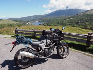 BSで『おかモネ』みて朝9時頃出発。その前に隣に駐輪していたスズキGSX-R1000のおじさんと会話。大宮ナンバーだね、そちらも柏ナンバーですね。近いね。河一つ隔ててるだけだね・・・って江戸川隔てた千葉と埼玉だけど近いか?まぁ同じく赤男爵で購入したバイクらしく色々お話を聞けて楽しかったです。そのままR19に出て南下。道路はほどよく空いている。ガソリン満タンにして塩尻峠を越えてR142へ。新和田トンネルくぐる前に旧道で和田峠を越えて目指すのはライダーの桃源郷ビーナスラインへ。今日も良い天気だ。