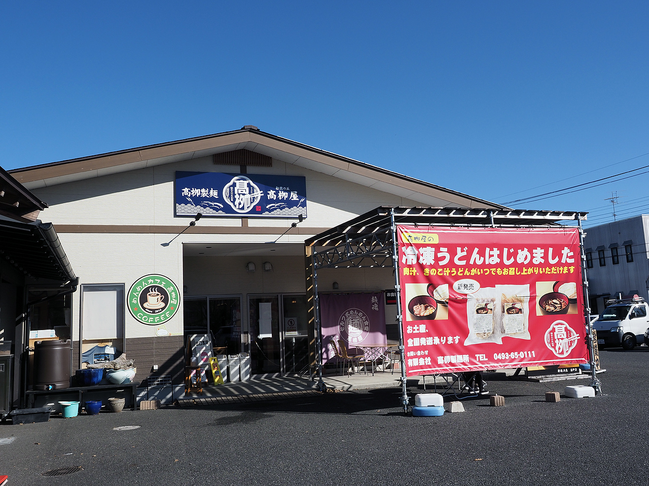 温泉が目的だけど今回の目玉はその同じ町内にある結構有名なうどん屋さんで昼食を取ろうかと。ちょうど通る道筋にあったんだけどいつも混んでるし敬遠していたのだけど温泉で喰うのも飽きたのでいっちょ行ってみるかと言うことで行ってみました。高柳屋です。
