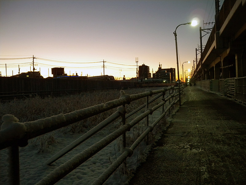 昨日降った雪は朝には凍てつく世界を作り上げていました。痺れる程寒いのですが幻想的です。
