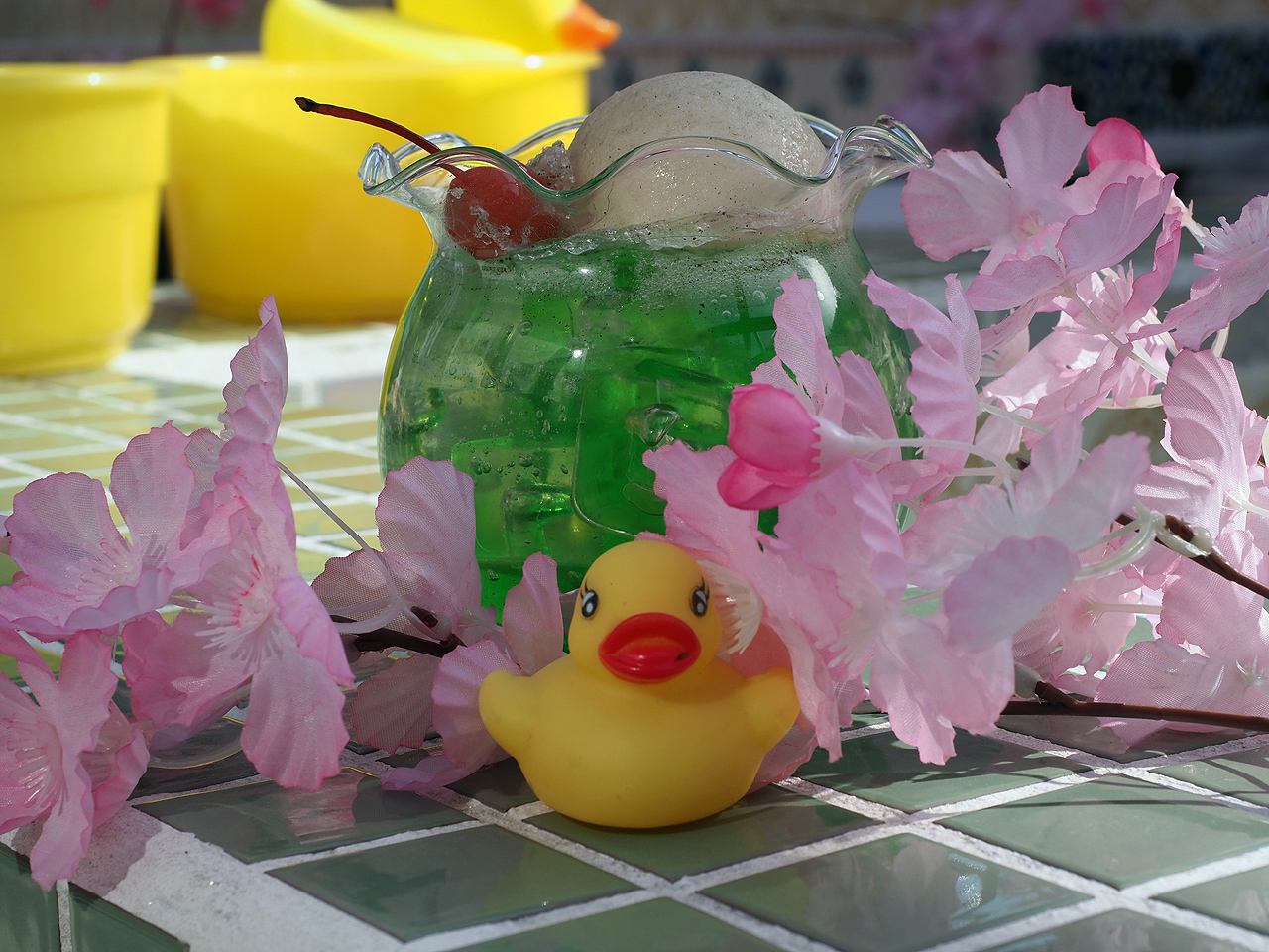 その後はいつもの玉川温泉でマッタリ・・・出来なかったと言うか、ビンゴ大会があったりして忙しかったです。野菜ジュースをGetしました。三回目の挑戦ですがどんどん貧弱になっていますw。テラスのオブジェは春模様なのですが全く貧弱というかもうやる気が無いだろうという感じ。萎えるわ~(哀)