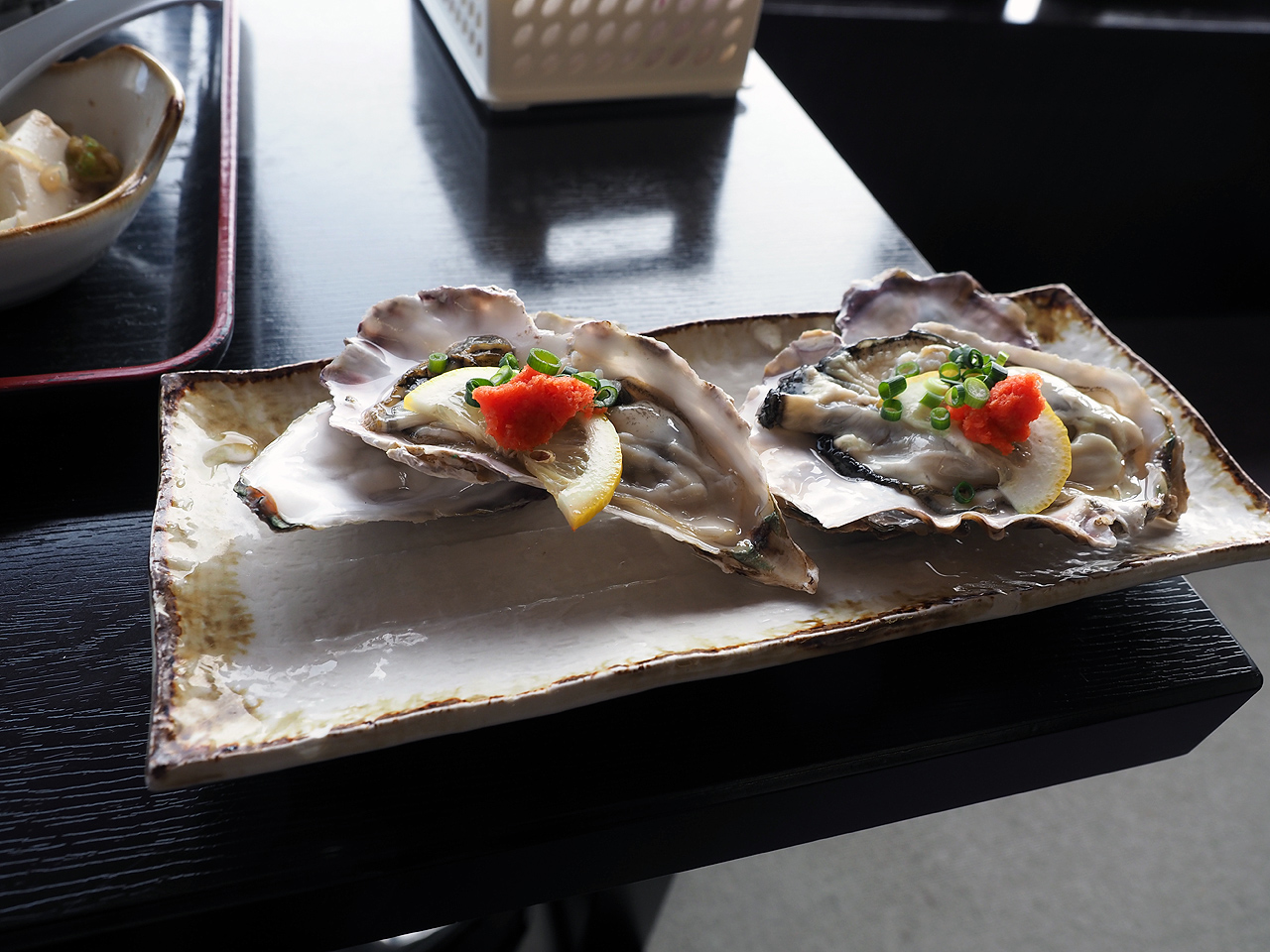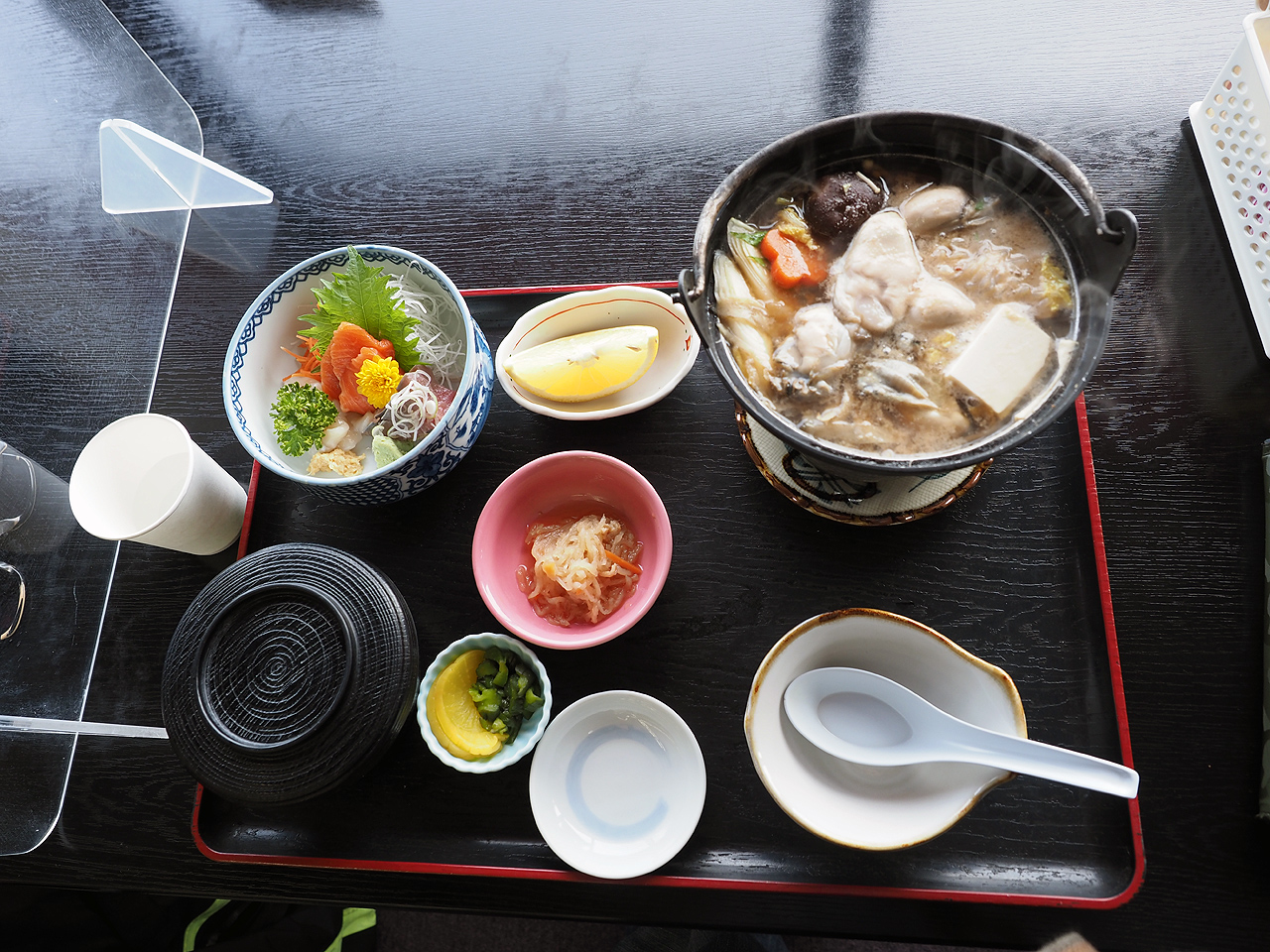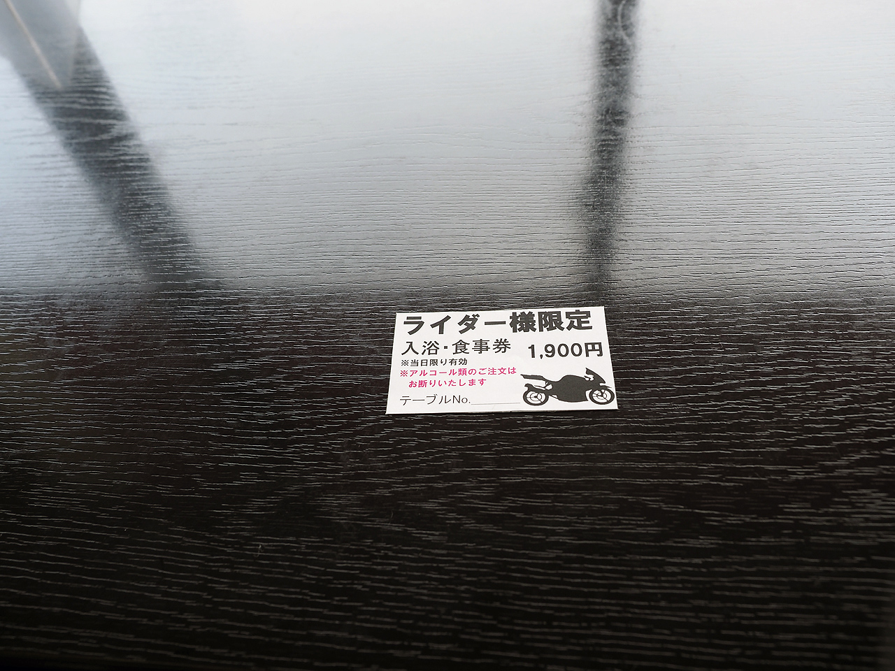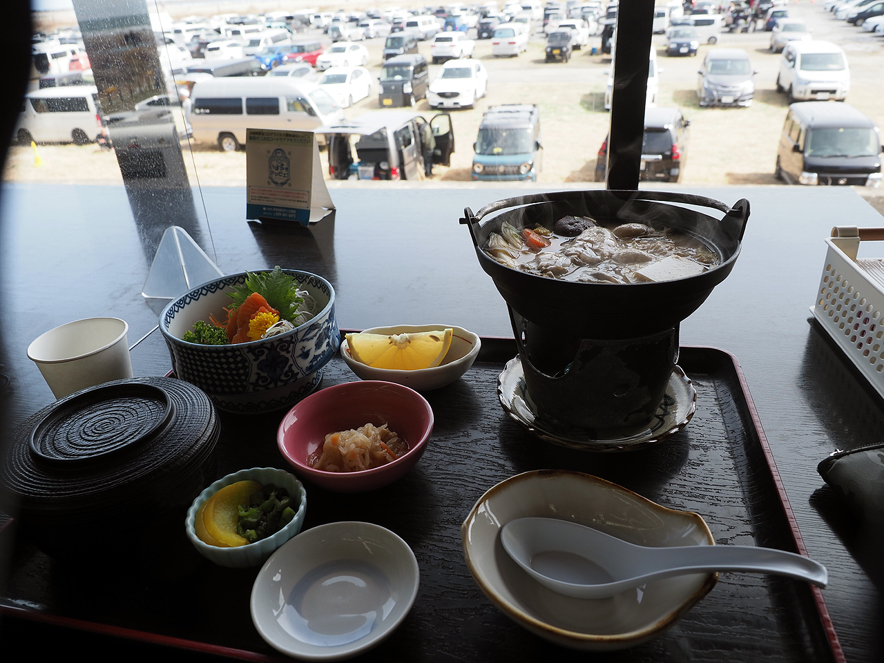 1100円は高いかなぁと思ったけど、1900円と2500円のライダー用の食事付きコースがあると聞いてそれをチョイス。1900円だと牡蛎鍋、2500円だとあんこう鍋だそうだ。まぁ理由もなく牡蛎鍋コースの1900円をチョイスしてとりあえず冷えたからだを暖めるべく温泉に入る。ナトリウム強塩化温泉・・・いわゆる塩っぱい温泉。まぁ海の太古温泉なんだからそうなるわな。露天の風が冷たい。ちょっとぬるめだからゆったり浸かれるのは良いんだけどもう少し熱いほうが強は良かったかなぁ。お風呂に入った後はお食事。これで1900円は安いわ。追加で生牡蠣も追加。これも美味しいし500円は安い。生牡蠣食べたのはいつぶりか忘れたよ(汗)