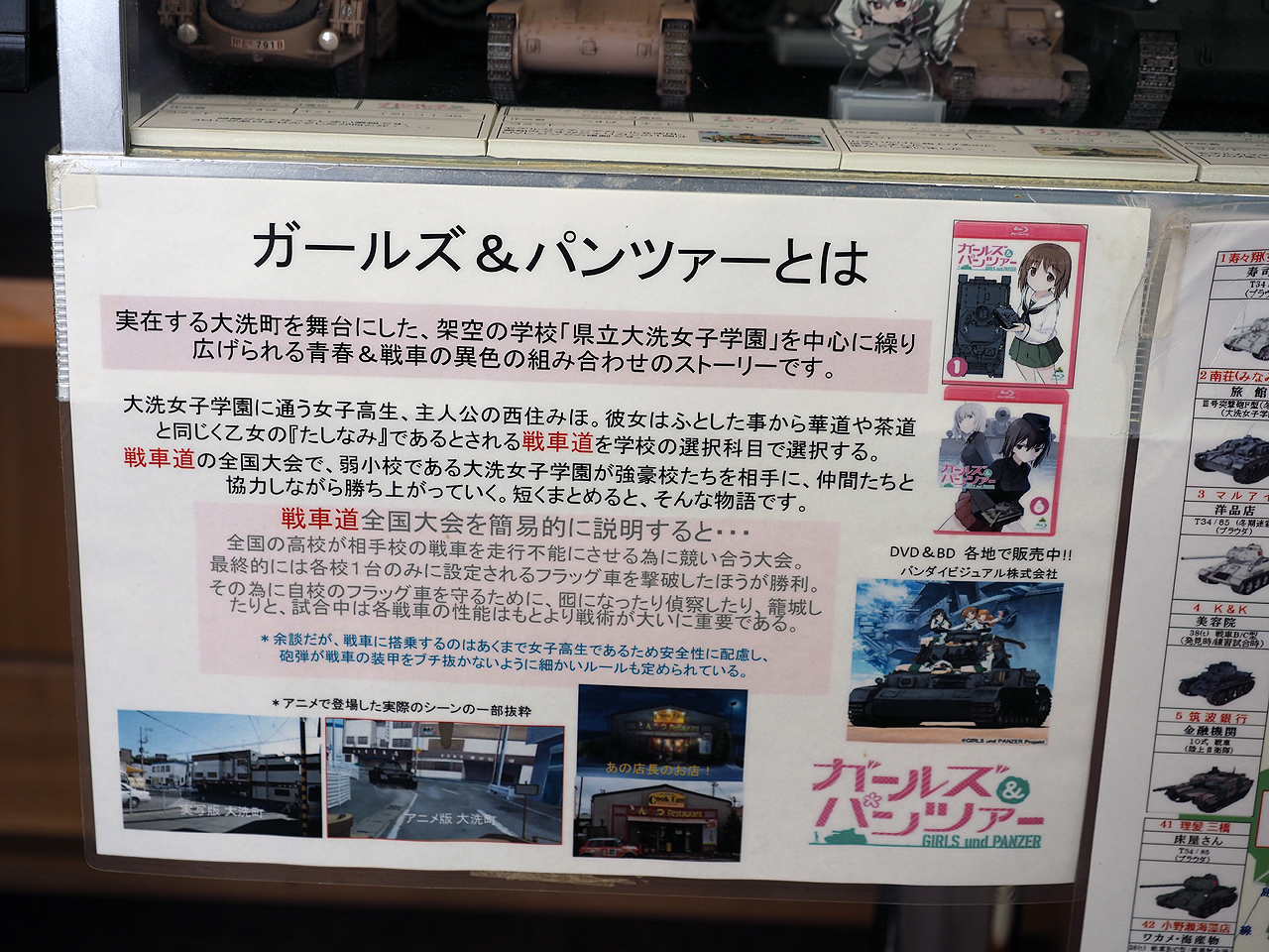 寂れかけた大洗を建て直したのは『ガールズ&パンツァー』というアニメ。いわゆる大洗を舞台にしたアニメで聖地化したお蔭でその筋の人が沢山訪れるようになった。そもそも大洗は海水浴&サーファーの土地でもあるし、フェリー港も漁港もあれば温泉もある、そしてマニアチックの鉄道も健在。それに加えて金をばらまくアニメオタクも頻繁に訪れるようになり活気に溢れる街にはなったようだけど・・・今は戦車はちょっとどうかなぁ。ロケも沢山行われるようで年末にもしもツアーズやらスギちゃんやら来ていたらしい。っていうかワイルドなら色紙破ってみろやと思わんことも無い。