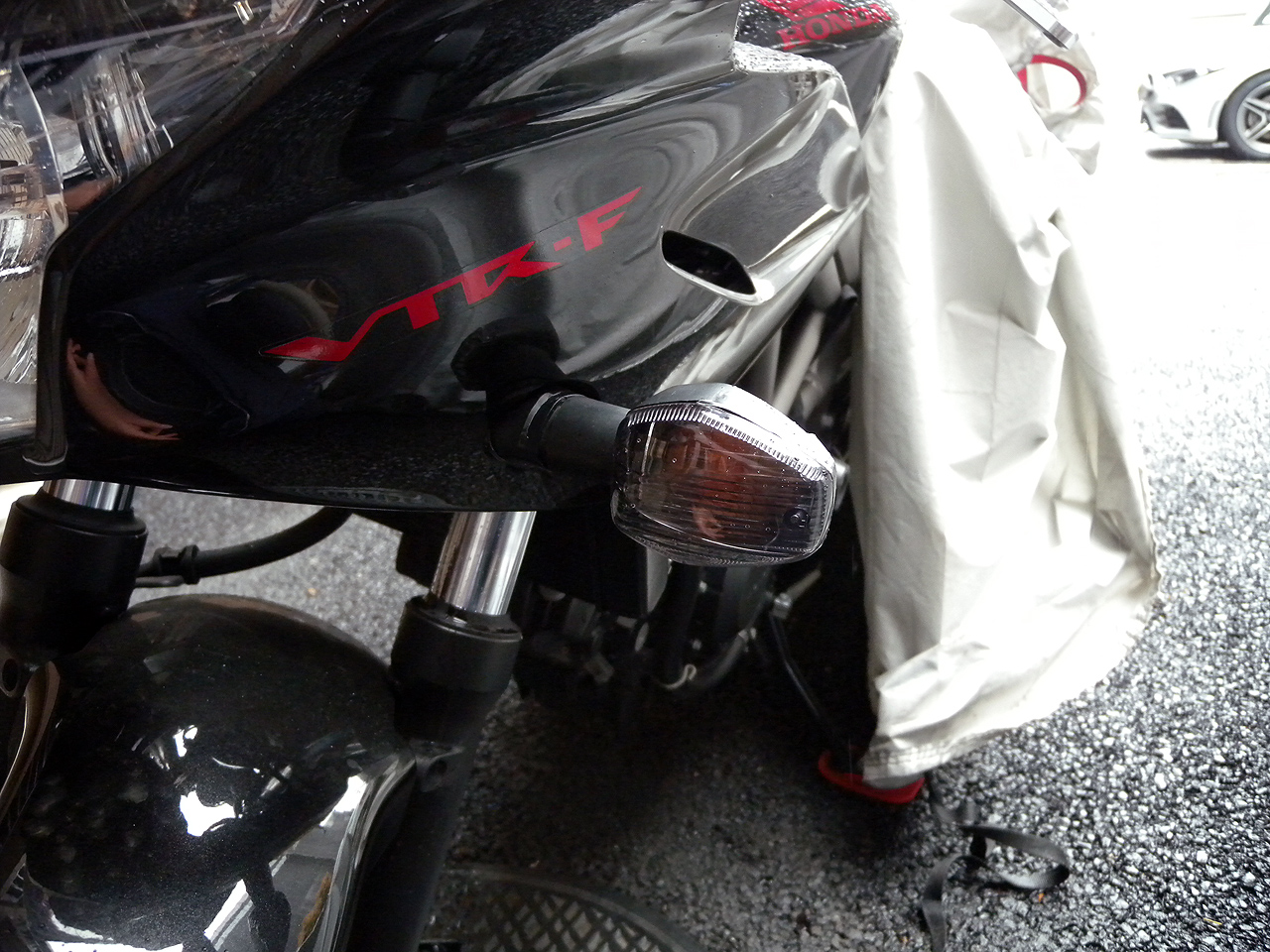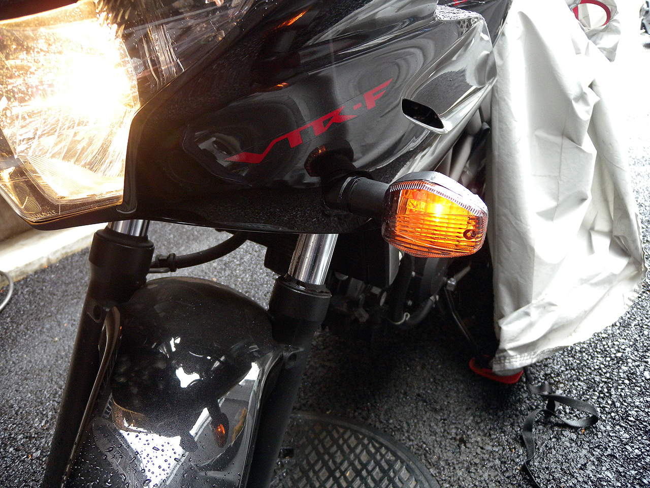 ポジション灯付きのダブル球なので電源オンなら常時こんな感じなので違和感はないなぁ。でもオフの時は精悍的になってカッコいいかも。あくまで主観ですけどね。まぁ立ちゴケ王なのでいつ壊れるか判らんけどそのうちカウル外しからやってウインカーごと交換したいねぇと。