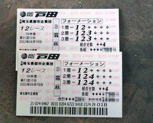 とまぁ今回は桐生の写真はろくに撮れなかったのでパス。舟券Get出来たので気分は良い。この流れで12R採れるかなと少し投資額と買い目を絞って勝負。と言ってもどう考えても1=2だよなぁ。①黒井と②馬場のガチ勝負。後は機力的にも腕的にもイマイチだしなぁ。⑥の篠崎はあまりガツガツ勝ちに行かないだろうし。と言う事で基本1=2の折り返しで23着に34を混ぜる。さてどうなるか。