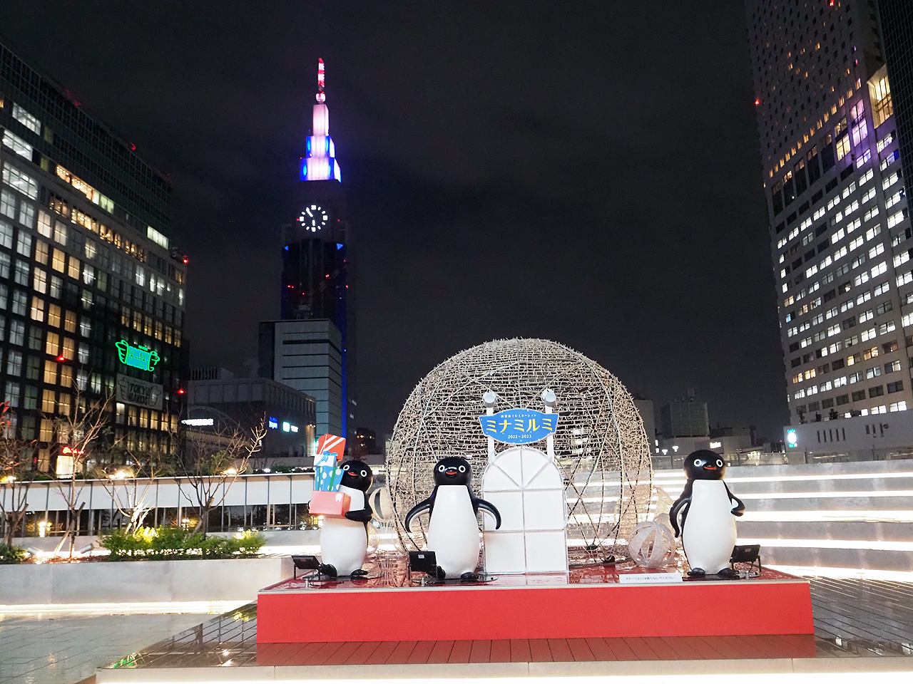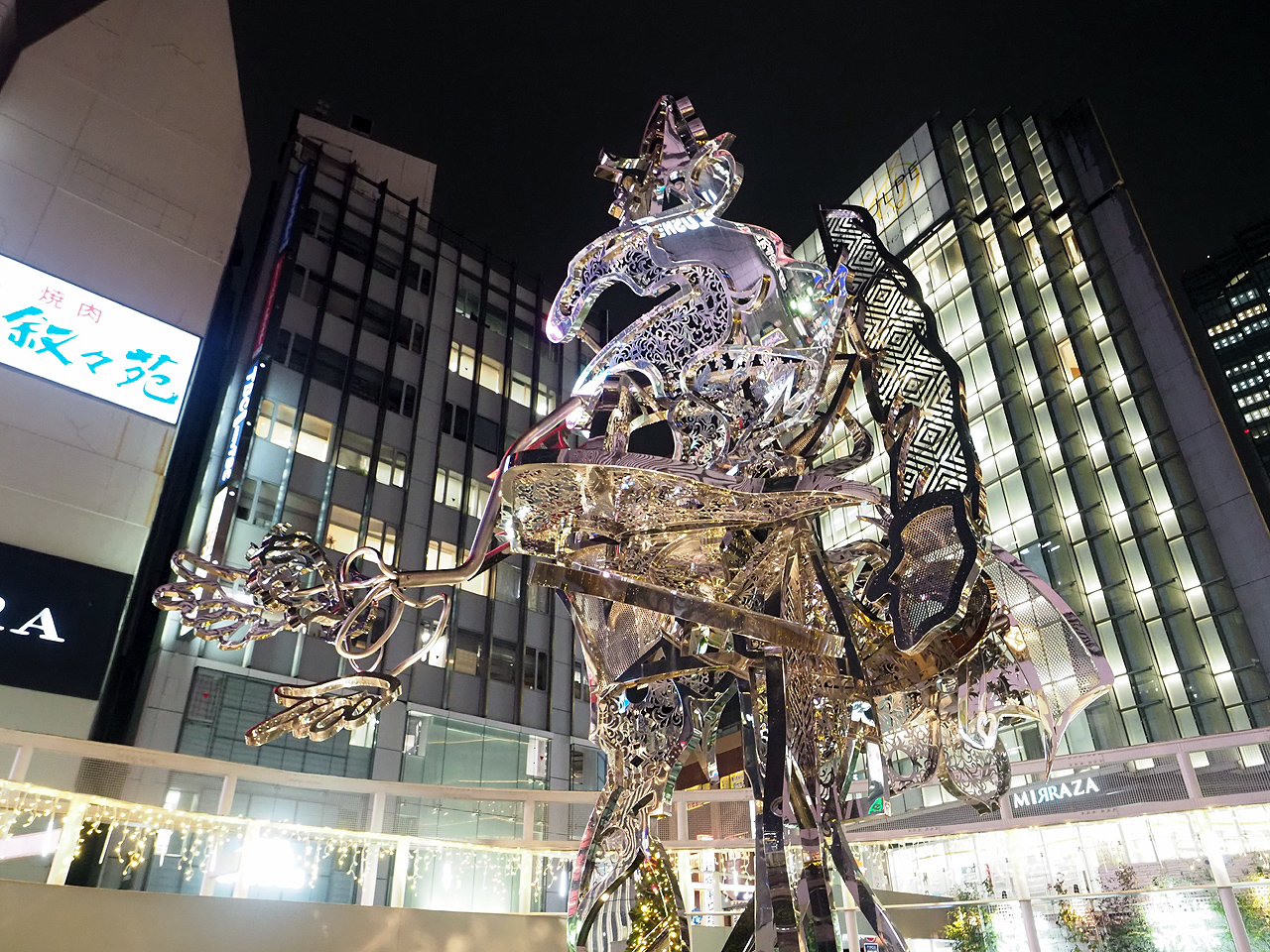 東口にも寄ってみたら駅前にイルミじゃ無い訳の判らんオブジェが。けっこう映えるのでこっちの方が撮れ高だったかなと。