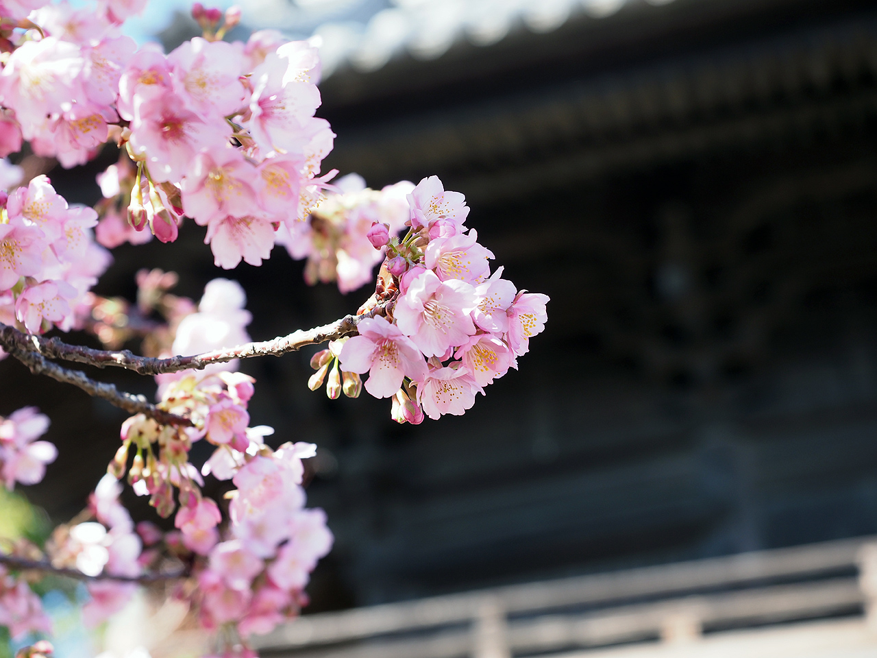 3連休だったのですが冷たい雨と強風ですっかり萎えてしまい何処も行かずに終了ですわ。まぁ最終日はメシ食いに行くので近所のお寺に咲いているという河津桜を撮ってきました。といっても盛りはとうに過ぎて散りかけているのでまだなようで見栄えはイマイチです。腕も悪いし(哀)