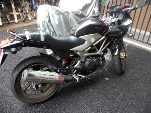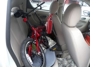 そして今日、ふと立ち寄ったUPGARAGEというバイクの中古品屋兼最近始めた自転車の中古品屋で見つけたのがこの自転車でした。ほぼ新古品というかAmazonで買って乗らずにそのまま売ったんじゃないかと思われる状態でしかもそこそこ安い。16inchのタイヤは気になったけど日常で使う事も無いかなと言うことでほぼ即決でした。R2の後部座席にもスポッと入るぐらいだし、理想のサイズでもありました。