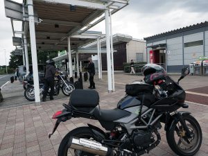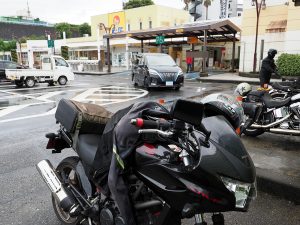 環八で南下進行。雨は止むどころか強まってきたじゃないですか!天気予報では7時台には上がる雨もどんどん酷くなってきた。ジャケットも30度予想だったので夏仕様のメッシュジャケットにしたけどどんどん雨に吸われて冷たく冷えてきた。道路が空いていたからどんどん進むけどどんどん濡れてくる。環八から第三京浜に乗る頃は雨で前が見えないじゃないですか・・・いや怖いし寒いし冷たいし。命からがら保土ケ谷PAで休憩というか避難。この頃にようやく雨も止みかけて来ましたが体は冷え切りました。天気予報に裏切られたというかさすがの雨男というか・・・