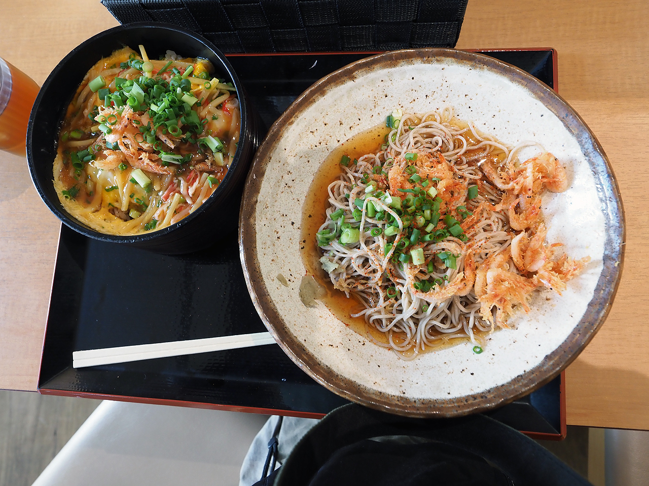 そのまま箱根新道へ。まだ空いているから走りやすいのだが如何せん寒いわ。こりゃ完全にジャケットの選択を間違えたよ!30度予想だったので春夏ジャケットは暑いかなと考えた末の夏メッシュジャケットだったけど流石に山は寒いかなと。峠を越えて伊豆縦貫道を経てR246、R1に戻る頃には天気も良くなり気温も上昇しちょっと暑くなってきた。道の駅富士で食事休憩。食事時なので多少混んでいるし富士山が全く見えない。残念。名物の桜海老入り蕎麦と卵とじ丼のセットメニューを食べる。中に着こんだウインドブレーカーを脱いで出発。