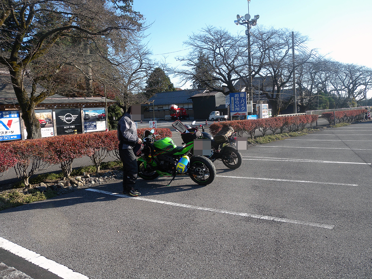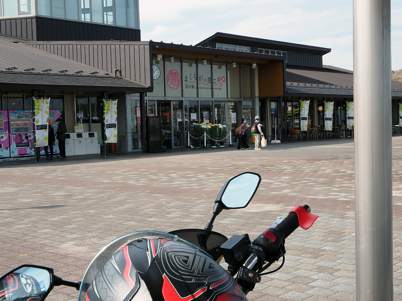 で当日ですがツーリングの前々日に同僚に預けてペアリング設定をしたはずなのにいざ当日で待ち合わせ場所で試してみると繋がらない。本人曰く何度も試して繋がるようになったのに・・・色々試してみてどうやらワタシのスマホとのBluetooth接続がダメなのではって事でBluetoothを切ってペアリング優先にしたら繋がりました。面倒くさいというかさすが安物です。ペアリングの代償が自分のスマホのアクセスキャンセルというそれってどうなんだ?そんな作業を道の駅こがで40分ほどやってようやく出発。目的地はバイク神社巡りというか同僚の安住神社のてるてるバイク坊主が煤けて奉納と買い換えが目的です。