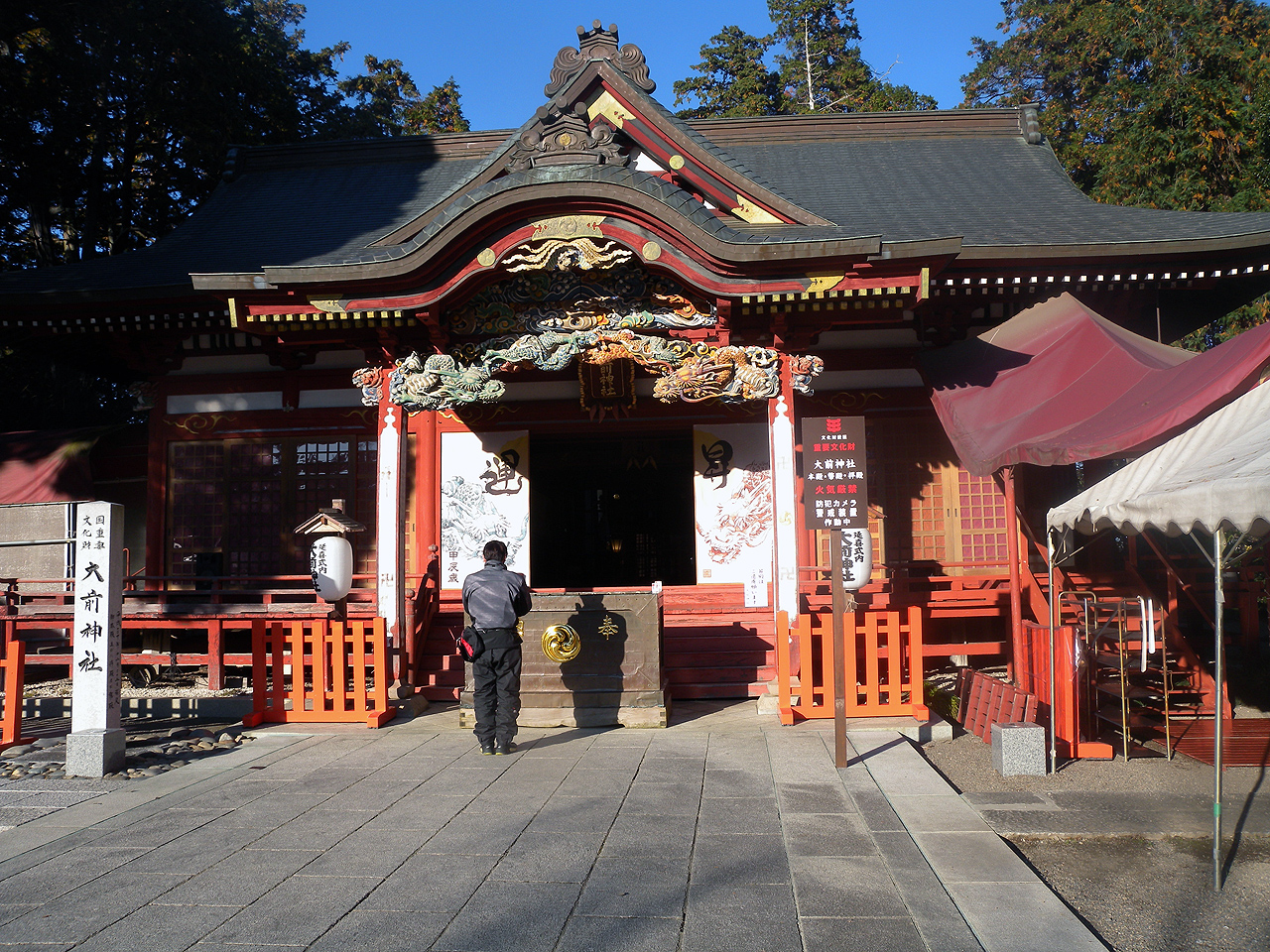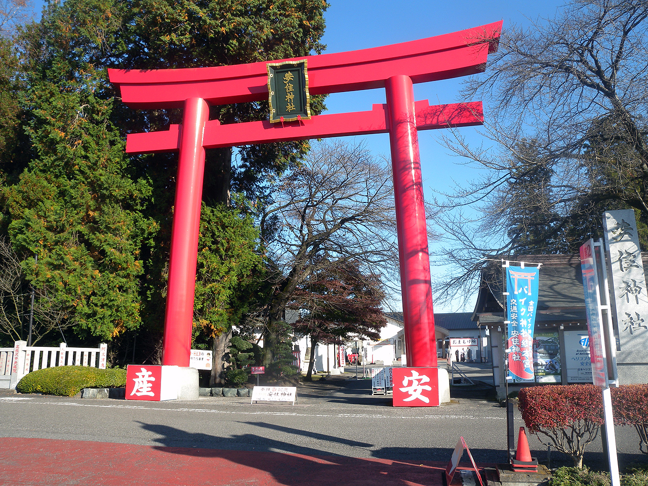 何時もの安住神社は宇津宮のとなり羽賀に近い所だけどもうひとつの方、大間神社は真岡市の市街地にある。距離にしておおよそ10kmしか離れていないので移動は楽というかワタシも以前に行ったときは真っ直ぐ来たので行き方が解らない。そんな時も同僚のナビゲーションとインカムが役立ってくれたです。コッチも裏道コースで行くことになったけど正直何処までも田舎道なので全然解りません。しかしさすがにナビ頼りだと細かい所までは解らず、1度到着場所をスルーしてしまい10分近くロス。到着したのは14時半過ぎ。同僚は参拝して御朱印貰って爆買いして次は道の駅ましこへ。同僚が行きたかった理由がここのプリンらしくって釜飯の器に入ったプリンが欲しかったらしい(汗)運良くラスイチをゲットして他のプリンも買って・・・って幾ら金使ってんだこの人(汗)。