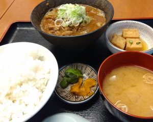 モツ煮定食。ボリュームがあって値段も手頃なんだけどねぇ