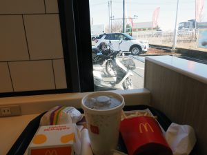 3連休の最終日、大寒波の襲来を知りつつも温泉に行きたいと頑張ってお出かけ。なんか何時もの麺類の気分じゃ無かったので昼マック。やっぱりポテトは美味しいなぁ。たまーに無性に食べたくなります。