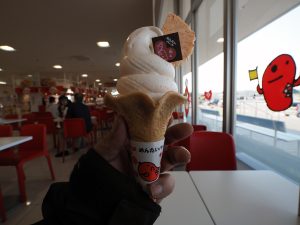 ここも客が少ないんだが売り切れがけっこうあるな。好きなジャンボおにぎりも値上がっているし、米不足は深刻である。その中でこのめんたいソフトクリーム360円は良心的な値段。今時その値段で喰えないからなぁ。まぁ味はそれなりというか明太子の意味があまりなかった気はするぞ。