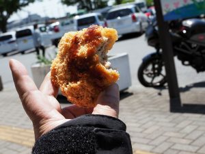 一応平日なので道路混んでいるかな・・・と思っていたのですがそんなに混んでいることはなく市街地もスイスイ。ひたすらR254を北上します。道の駅花園で休憩してメンチカツを購入。随分高くなった気がするけどこう言うジャンクな軽食が良いのである。