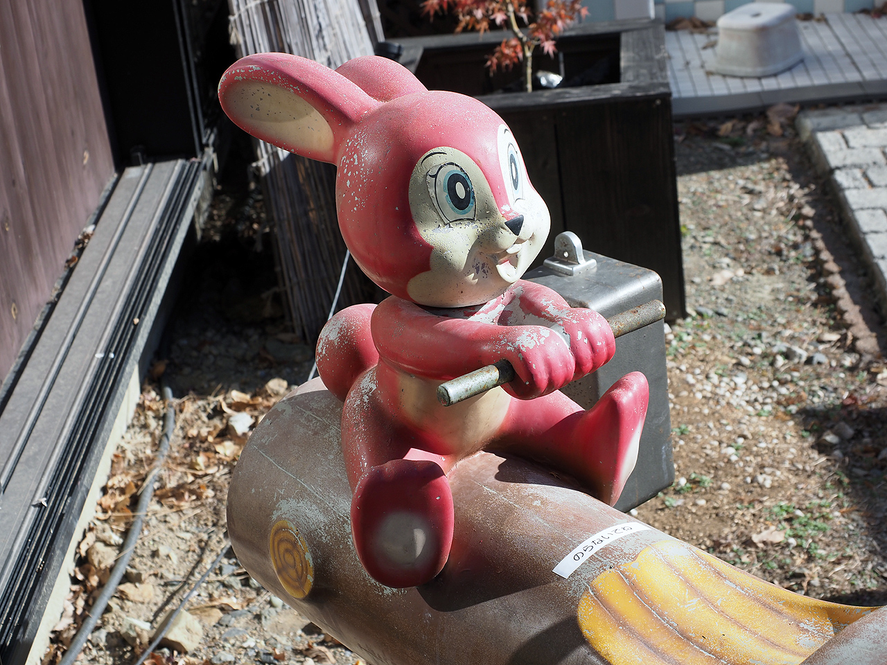 と言っても特段温泉に変化は何もないというか今日はあまり寒くなくバイク乗るのもそう辛い訳じゃなく、温泉の駐車場にあったイチョウは全て散って坊主だったし入浴後は飯は高い飯を喰うほど腹が減ってなかったし何もネタが無いなと思って外覗いたらなんか見覚えあるようなウサギがあるじゃないですか。