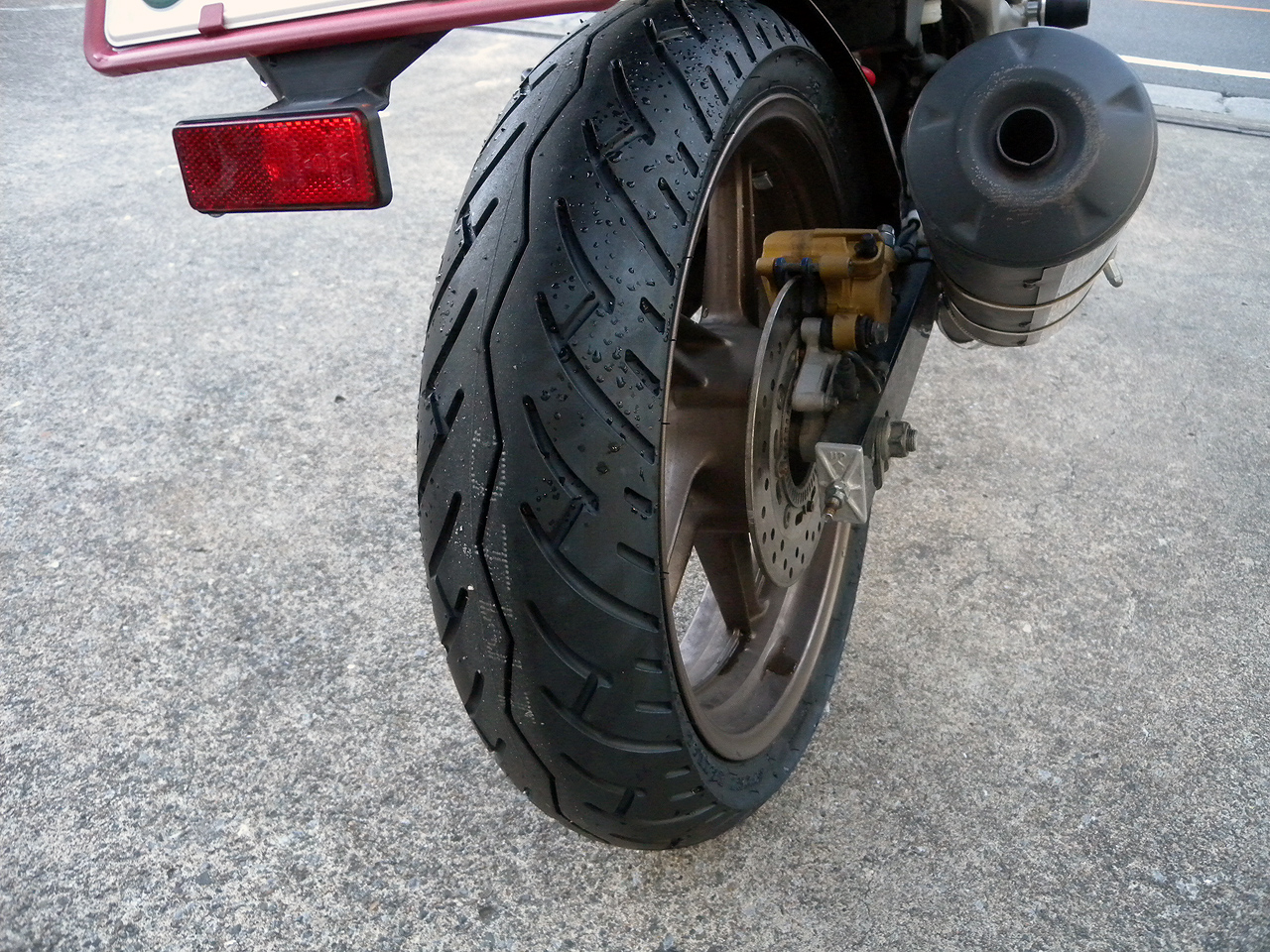 貧乏なんで安い所をいろいろ調べてみたんですがどうもラジアルタイヤの上に110/70-17(前)140/60-17(後)という殆ど市場に出てないサイズで種類がないので特売品も出てない。しかもどんどん値上がりしてどこも安くないし、通販で買うにしても取り付けてくれるところがないのでどうしたものかなと考えた挙げ句買ったところに相談したらなんとそこが一番安かった!工賃も高くないし2年点検込みで即決し予約、そして当日を迎えて朝イチで預けてきました。夕方までには仕上がるらしいのでそこまで時間つぶしです。