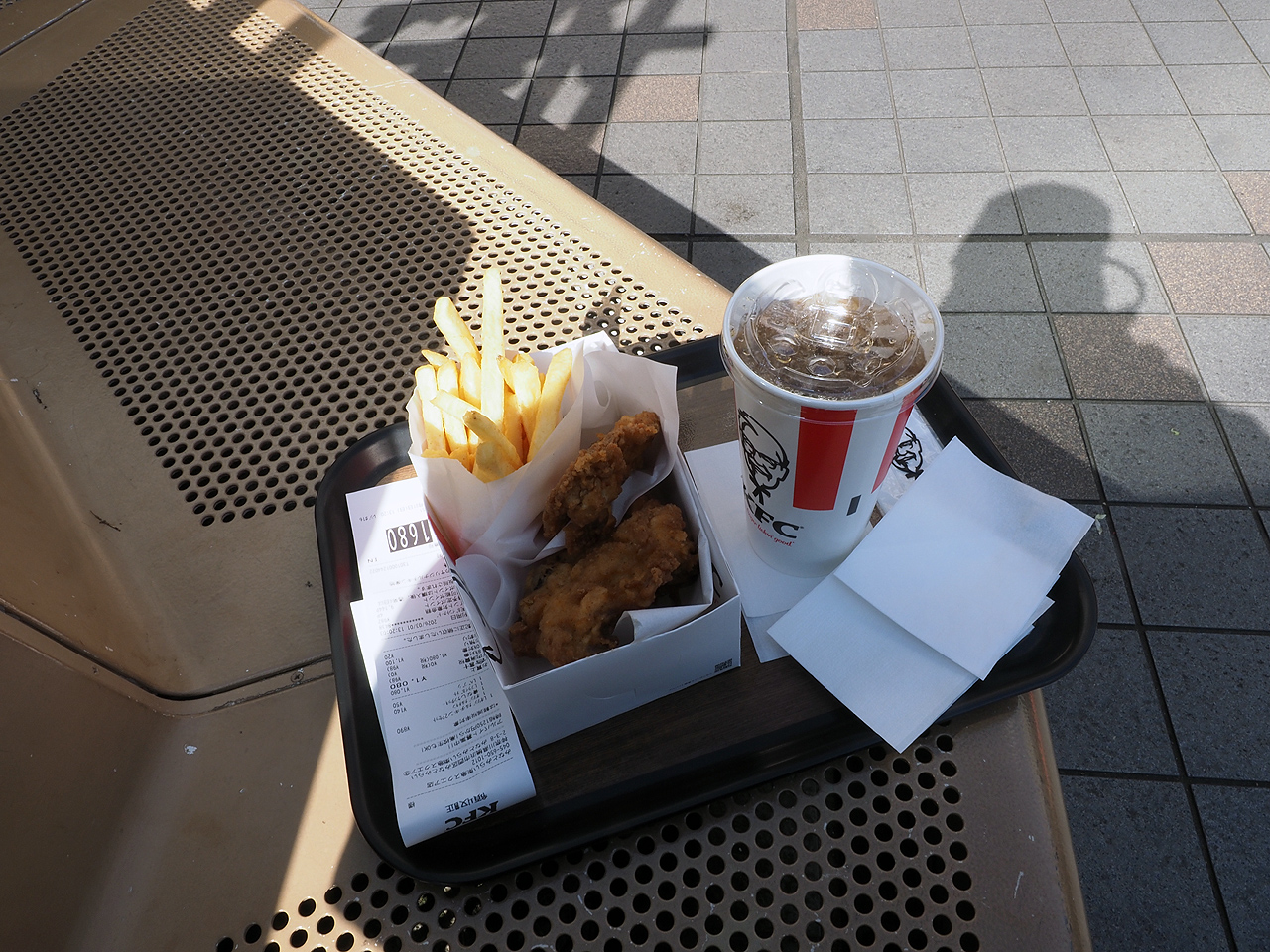 えっちらおっちら電車で来たのですがまぁ休日ともあって混んでいる。街もデカいというか箱がデカいというか街が未来都市って感じだよなぁ。会場入る前に昼飯と探したけどあまりにも混んでいるしオシャレすぎてお店入れないし値段も立派すぎ。どうにか行列の少ないKFCで手を打ったけどしゃぶるように食べるフライドチキンはなんか恥ずかしかった(汗)。