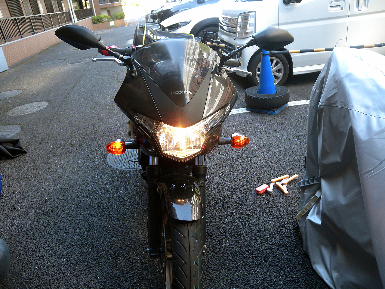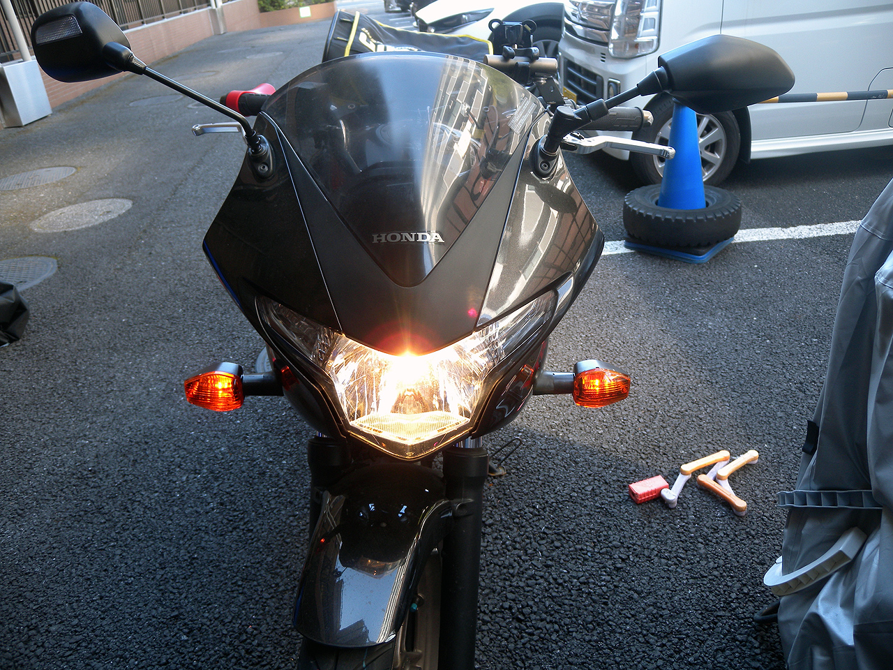しかしというか購入したウインカーはスモークじゃなく普通のアンバーなので両方とも交換。っていうか買ったウインカー前後4灯を買ったつもりなのに全部フロント用の3線だった。しかも全部右ウインカーとは。返品するのも面倒なのでそのまま使用。
