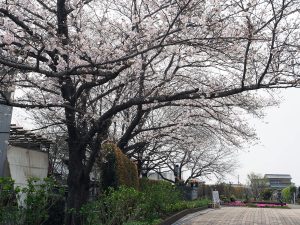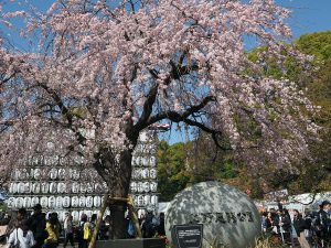 と言うわけで本番の桜見です。入口の桜はほぼ満開です。