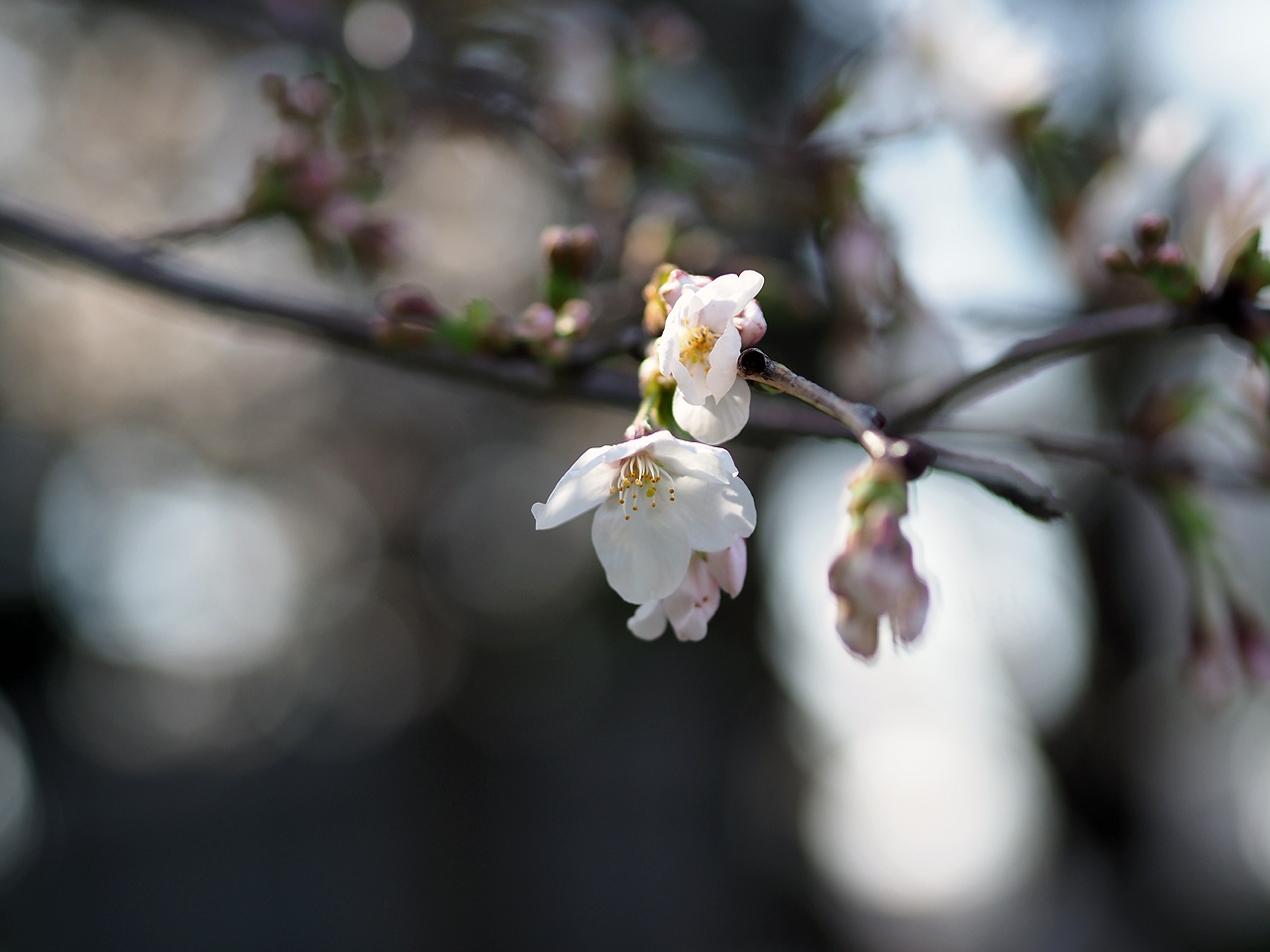 公園内の桜はようやく咲いたか2~3分咲き程度で花見にはまだ早いかなと。買ったレンズはM・ZUIKO45mmF1.8というフルサイズ換算で90mmに相当する単焦点中望遠レンズで解放ボケ感のテストをしたかった。使った感じはまぁ凄く使いにくいけど性能的には良いんじゃないかなと。丸ボケも浮き上がり感も悪くはないかなと。安く作っている割には悪くない。