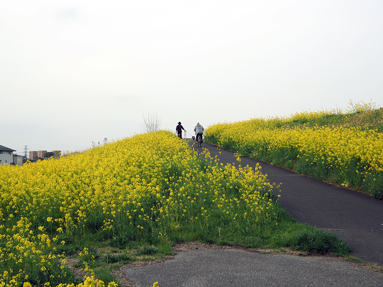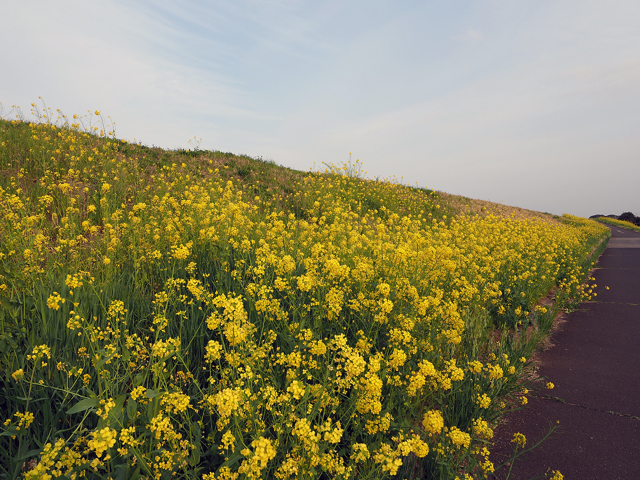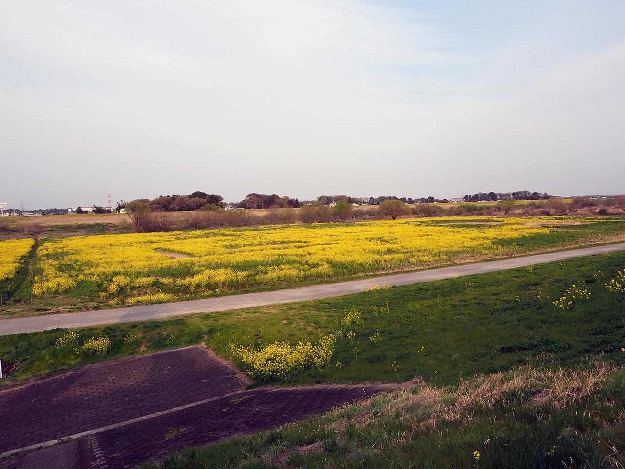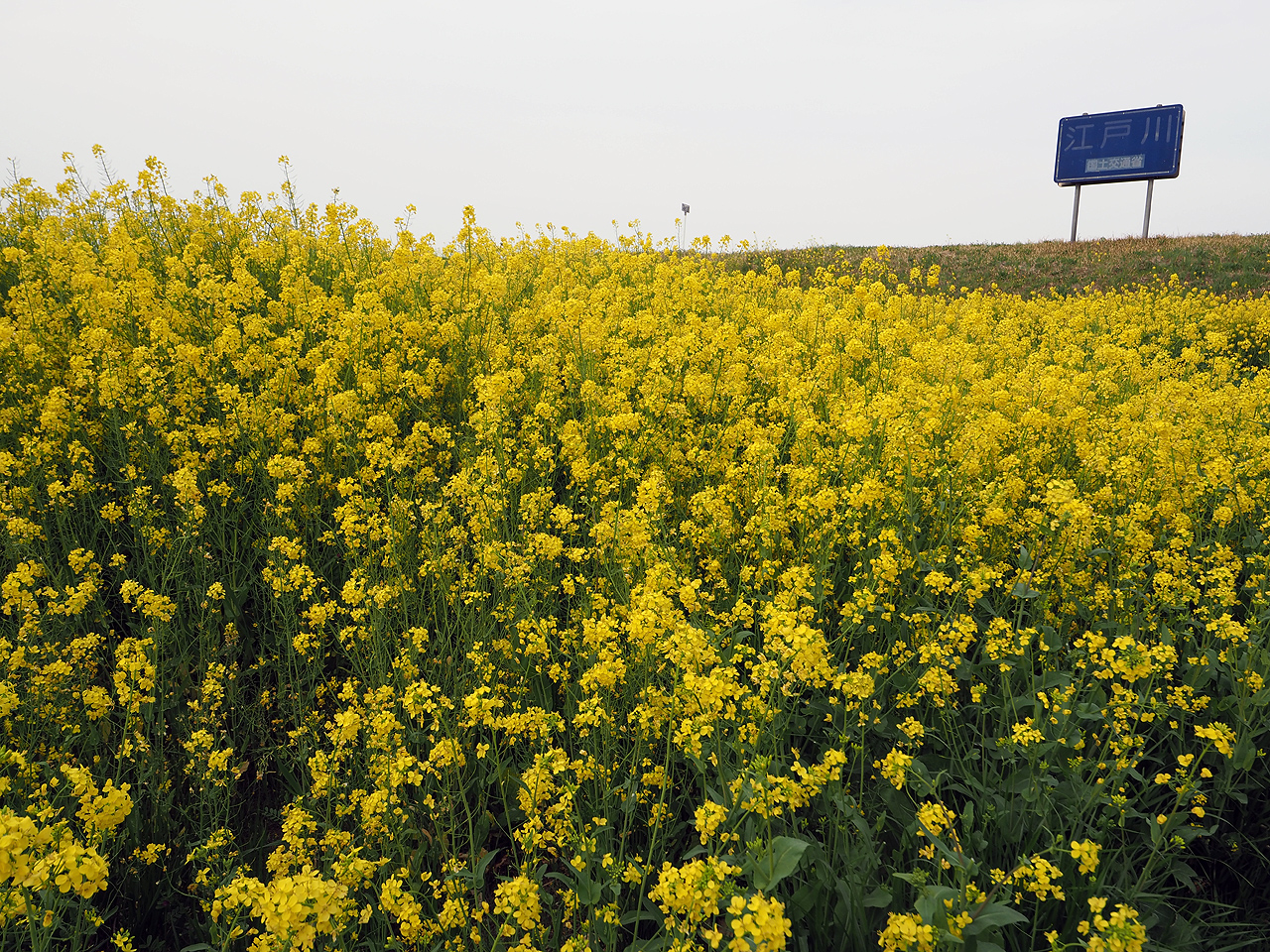 かーちゃんに頼まれた買い物を済ませて車を走らせてると江戸川の橋下に菜の花畑がありました。昔はなかったんですけどね。