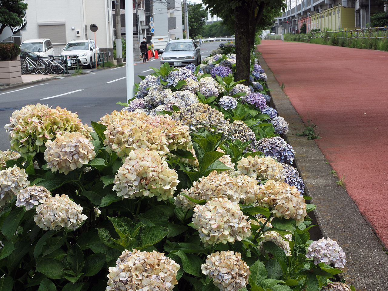 あるもんです。武蔵浦和~北戸田間のさいたま市側にこんなあじさい街道が。咲き誇ってました!・・・尤も盛りは既に過ぎちょっと萎び気味。