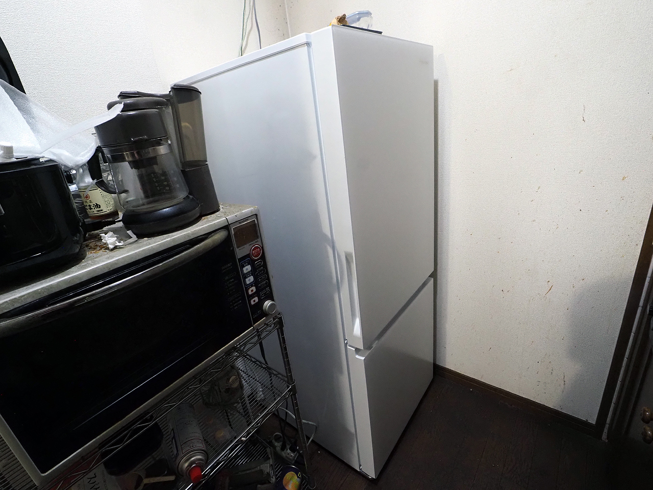 実際契約したのは今月の二日だったけど仕事の都合というか配送時間は選べないということなので一日休みになった今日搬入。その前の掃除が大変と言うが地獄だった(汗)。かなり捨てるモノを捨てて搬入ルートを確保して?さあ当日16時に来ますと前日連絡があったので15時に最後の片付けするかと思ってたら15時過ぎに来やがった(汗)。まぁ早く来る分には問題無いけど流石にまだ片付け済んでなかったのはちょっと恥ずかしかった。まぁそんな感じでアタフタしながらも設置して終わったんだけど思ったよりデカいというか扉がギリギリだった(汗)。ギリギリすぎて仕切り板が取り出せねー(爆)。保護材剥くだけなので良いんだけど(汗)。